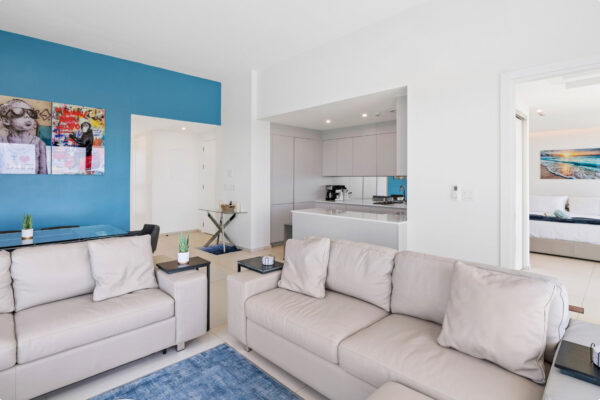 Recent sales of luxury condominiums in Cupecoy (see Table 2) robustly demonstrate the area’s enduring market strength and consistent value appreciation. An investment in Fourteen Mullet Bay strategically positions you at the absolute forefront of this dynamic market, within a development meticulously designed to be a leader for decades to come. Consider, for instance, the compelling value of a 2-bedroom, 2.5-bathroom, 1248 sq ft (116m²) residence on the 18th floor of Tower B, listed at $795,000 – a prime offering within this iconic structure that is Fourteen SXM. Further underscoring the immediate value and inherent income potential, Christie’s International Real Estate lists a 2-bedroom, 1,151 sq ft unit on the 12th floor of Tower A at Fourteen Mullet Bay for $825,000, explicitly noting that it is already a “turn key property generating income from vacation rental.”